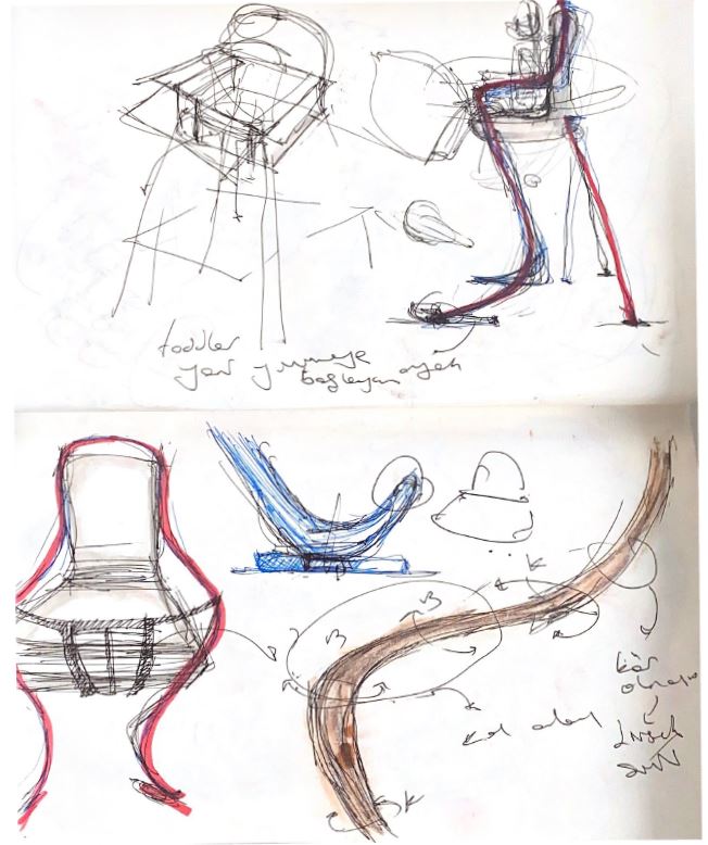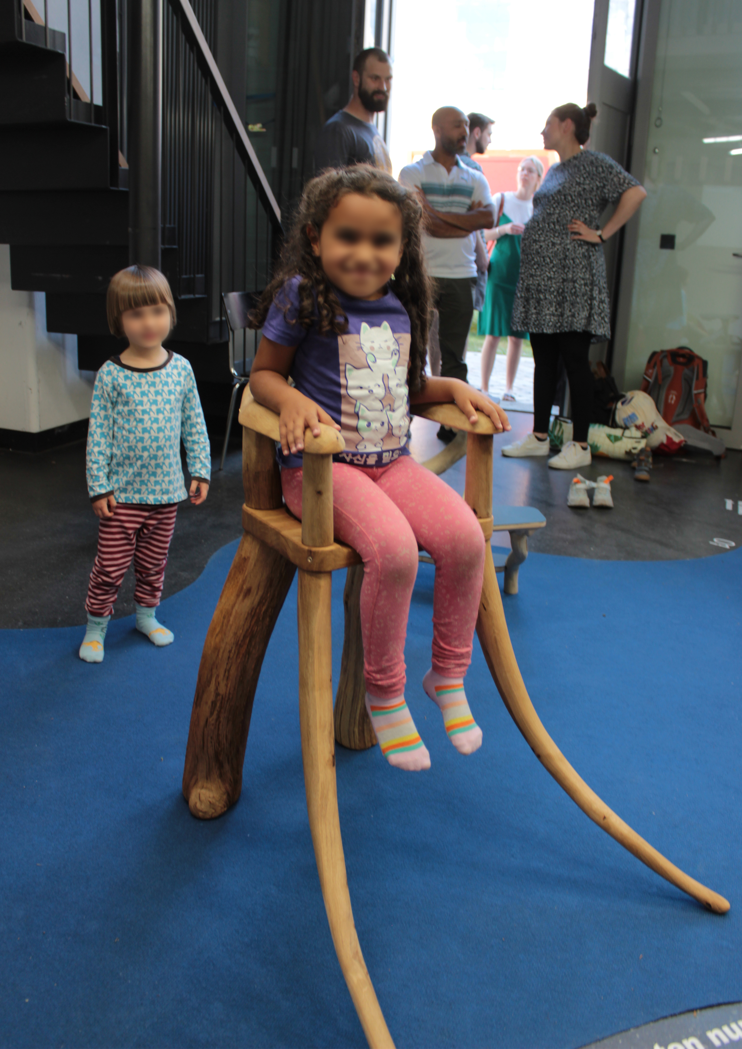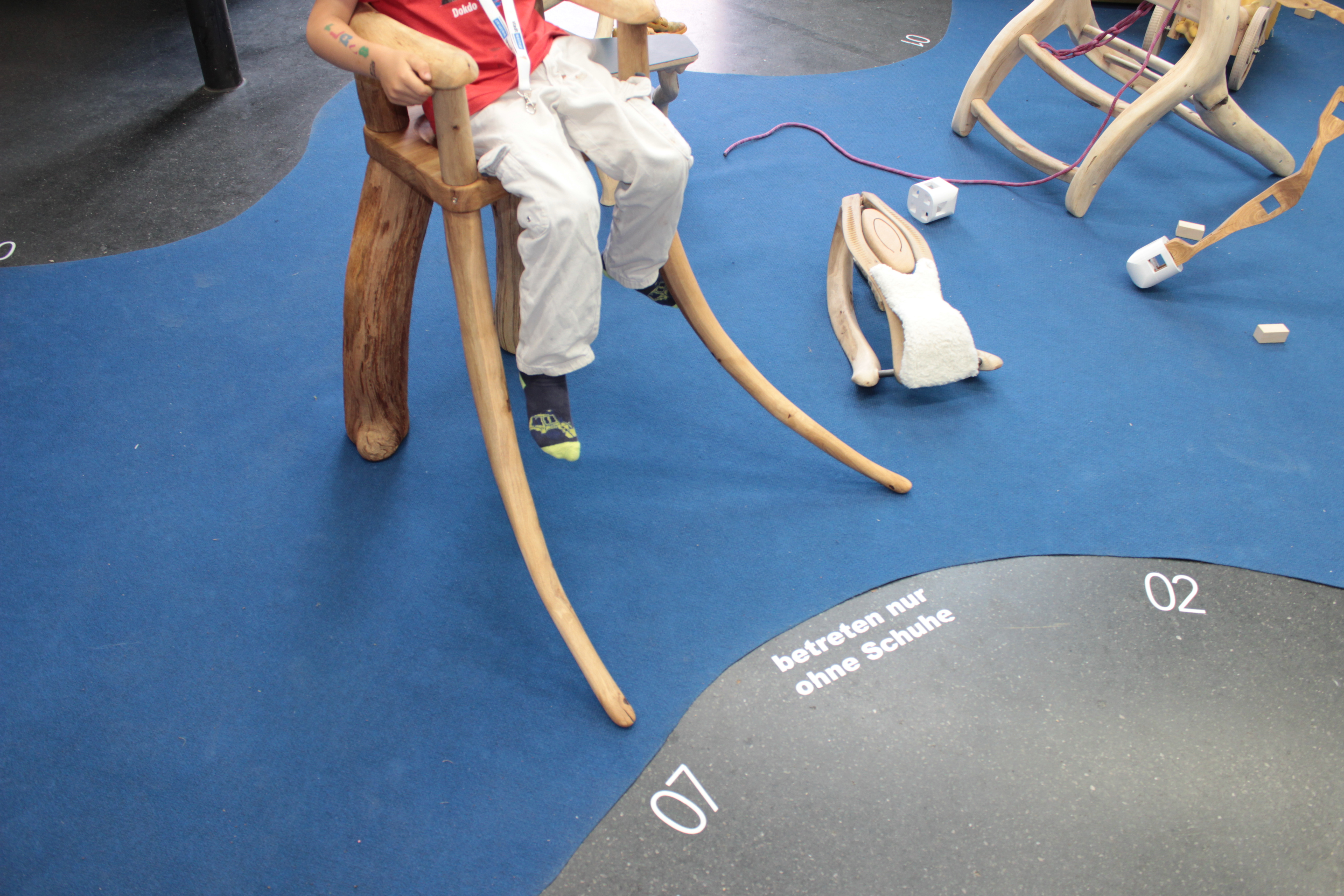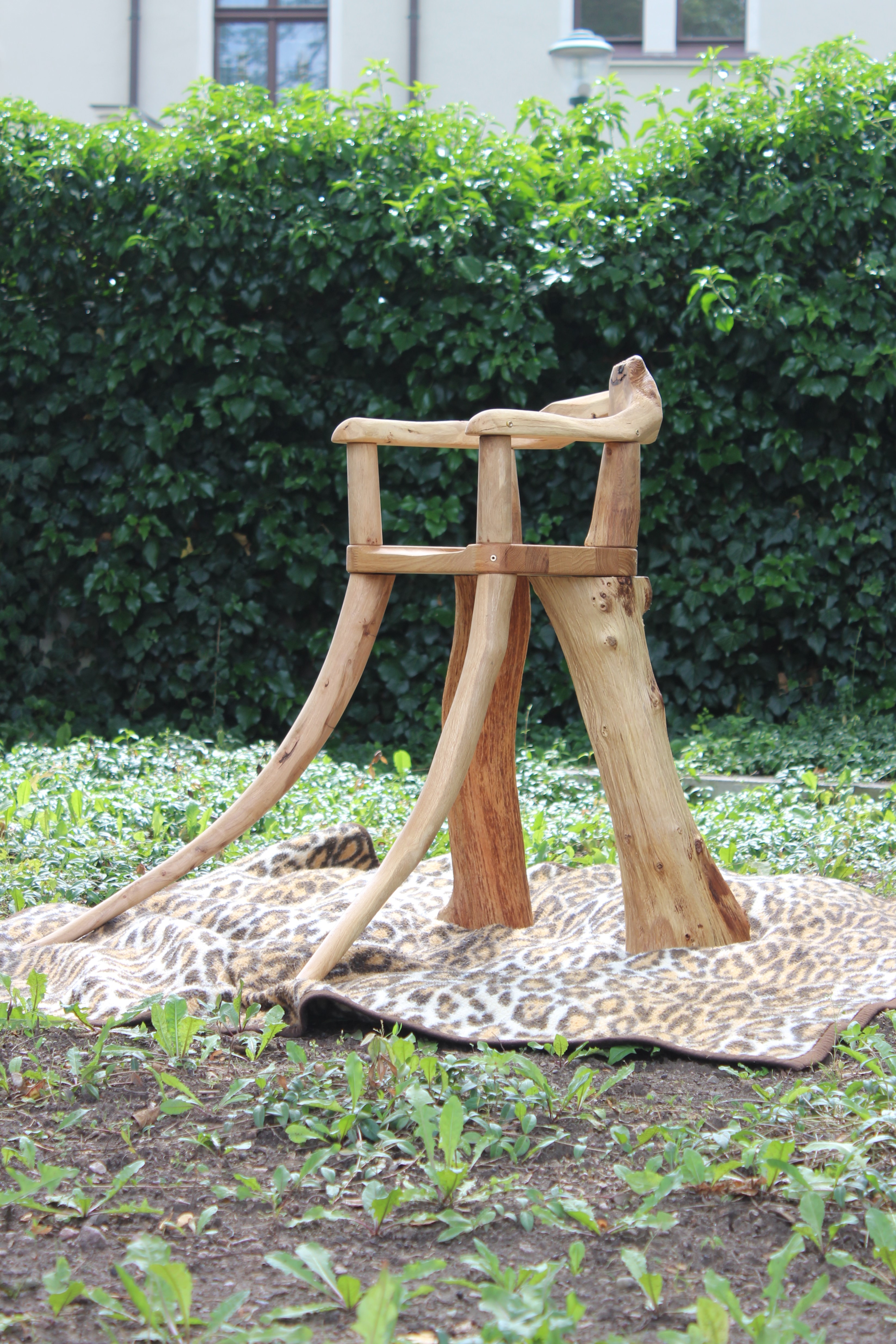 While the chair maintains a familiar typology, its contrasting elements—slender, curved front legs and thick, textured rear legs—evoke a hybrid, almost creature-like appearance. By combining normative elements such as the seat with non-normative structural parts, Mäni encourages children to interpret, imagine, and engage with the object beyond its functional role.